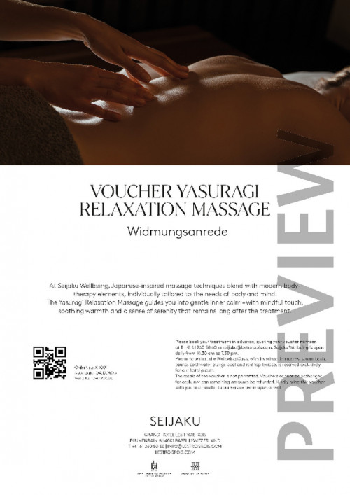 Yasuragi embodies the "gentle feeling of inner peace" – that rare moment when body, mind, and soul are perfectly balanced. In mindful silence, your mind lets go, while your body recharges. This massage brings you into a state of deep serenity that lingers long after.