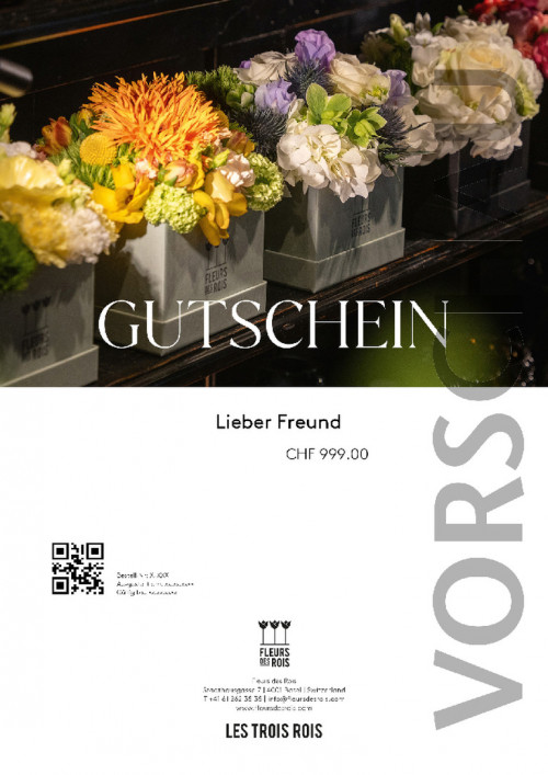 Verschenken Sie einen Gutschein für eines unserer Signature Bouquets, eine Boîte à Fleurs oder ein Bouquet ganz nach Ihren Wünschen. Neben den majestätischen Klassikern warten auch unsere saisonalen Kreationen darauf, entdeckt zu werden. Mit Feinsinn und passionierter Handwerkskunst fertigen wir alle unsere Blumenbouquets. Das Fleurs des Rois führt auch ein kleines, feines Sortiment an auserlesenen Accessoires. Gerne liefern wir auch an Ihre Wunschadresse.
