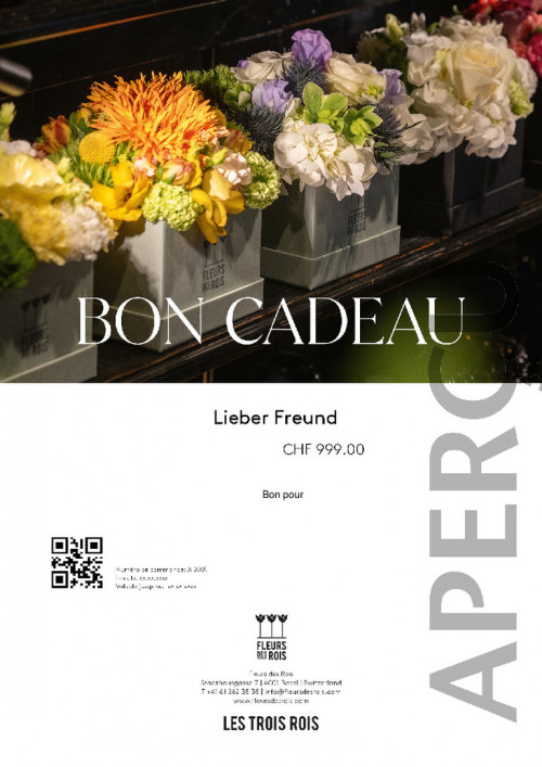 Offrez un bon cadeau pour l’un de nos bouquets emblématiques, une boîte à fleurs ou un bouquet composé par vos propres soins. A côté des classiques majestueux, nos créations de saison méritent également d’être découvertes. Tous nos bouquets sont confectionnés avec soin, par des artisans passionnés. La Fleur des Rois propose un petit assortiment d’accessoires sélectionnés. Nous livrons également les bouquets à l’adresse de votre choix.