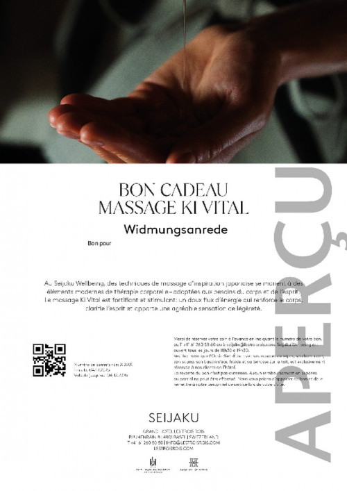 Dans la culture japonaise, le Ki représente l'énergie vitale essentielle qui traverse tout. Une force qui n'a pas besoin d'être bruyante pour être perceptible. Dans ce massage, le Ki se déploie comme un doux courant: il renforce le corps, clarifie l'esprit et donne de la légèreté à l'âme. Une invitation à respirer profondément, à lâcher prise – et à puiser une nouvelle énergie.